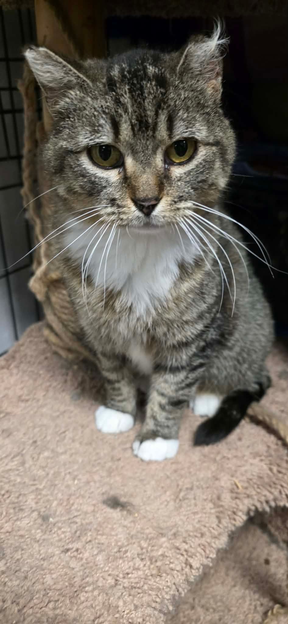 Description: Loves to play with carpet squares and in the sink. She loves attention. She is a great cuddler.